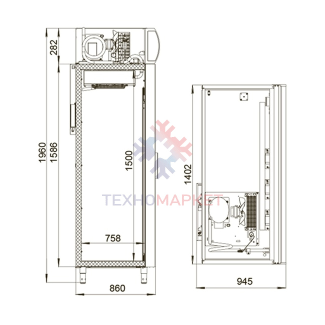 Standardсо стеклянными дверьмис 8 полкамис распашными дверьмидвухдверныесреднетемпературныеиз оцинкованной сталис контроллеромот +1 °Cдо +10 °Cс динамическим охлаждениемс агрегатом сверхуобъёмом 1400 литров
