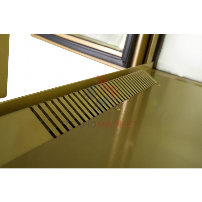 Стенки и дверца оснащены стеклопакетами, предоставляющими максимальный обзор выставленной продукции. Корпус изготовлен из окрашенной стали.