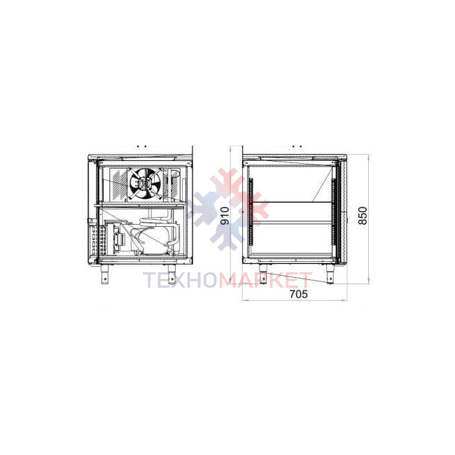 - Все элементы холодильной системы со скрытым испарителем полностью вынесены за пределы охлаждаемого блока