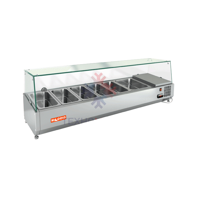 Настольная холодильная витрина Hicold VRTG 1485 1/3 предназначена для охлаждения, кратковременного хранения и демонстрации ингредиентов, салатов и готовых блюд на предприятиях общественного питания и торговли.