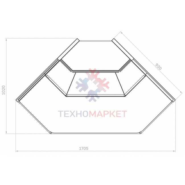 - Двухступенчатые поддоны для выкладки товара (высота 120 мм, глубина 480 мм)