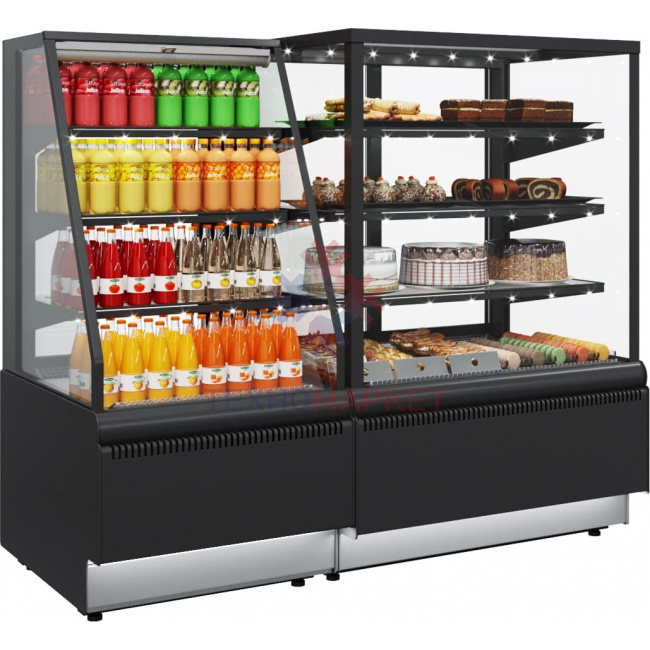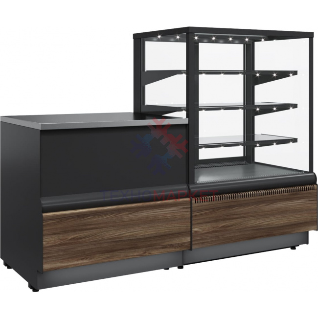 Описание Кондитерская витрина Carboma ВХСв-0,9д CUBE STANDARD ЛЮКС (KC70 VV 0,9) Техно (9006-9005)