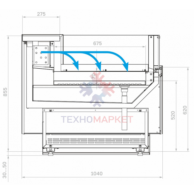 - Модель без боковин предназначена для установки нескольких витрин в линию и не может использоваться как отдельностоящая. При заказе нескольких моделей для установки в линию достаточно приобрести две боковины для первой и последней витрины.