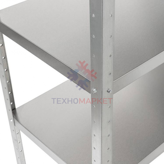 - Разработанная на предприятии система крепления полок, обеспечивает жёсткость конструкции стеллажа;