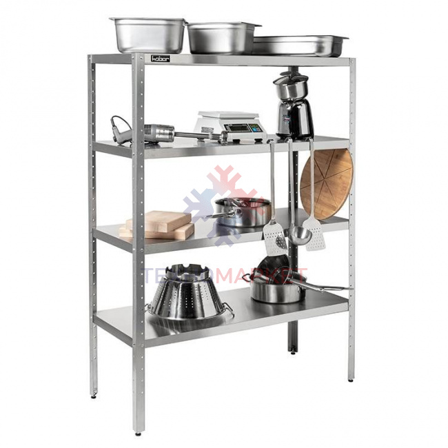 - Содержит четыре сплошные полки из нержавеющей стали AISI 430, расположенные каскадным образом;