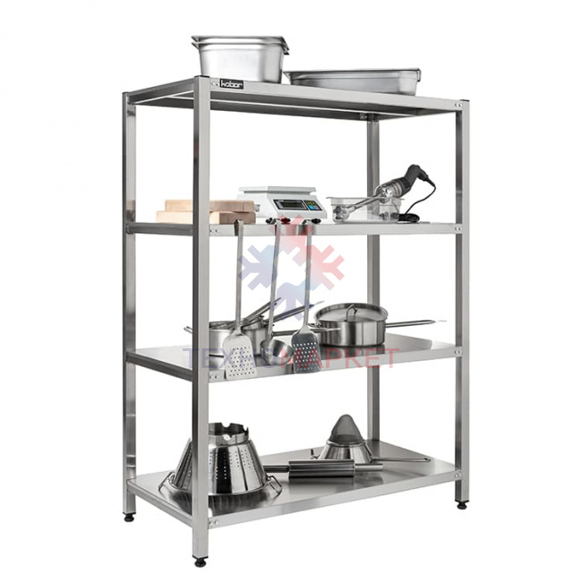 Стеллаж прямой сплошной Кобор СКТР-100/30 (высота 1800 мм) предназначен для хранения посуды, различного инвентаря и сухих продуктов на предприятиях общественного питания и торговли.
