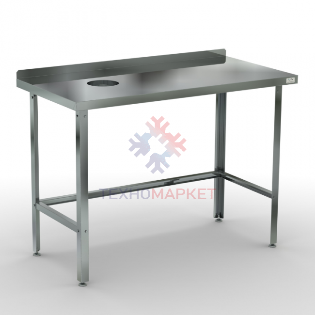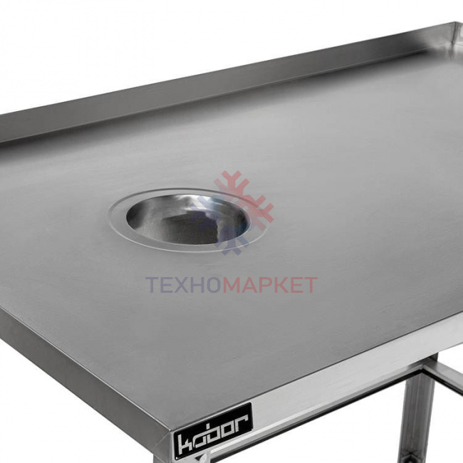- Стол для сбора пищевых отходов оснащен столешницей с отогнутым вверх задним бортом и предназначен для установки около стены. Борт предохраняет от попадания продуктов питания на стену или пол;