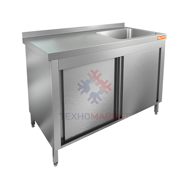 Имеет отступ в задней части корпуса, что позволяет установить оборудование вплотную к стене, даже если вдоль неё проведены инженерные коммуникации. Столешница, усиленная рёбрами жёсткости, выдерживает большую нагрузку. Промежуточные полки внутри изделия отсутствуют.