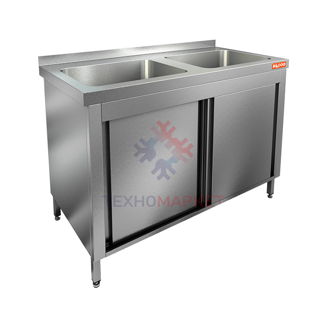 Закрытая моечная ванна Hicold НСЗК2М-10/6Б предназначена для мытья продуктов, посуды и другой кухонной утвари на предприятиях общественного питания и торговли. Оснащена двумя раковинами.