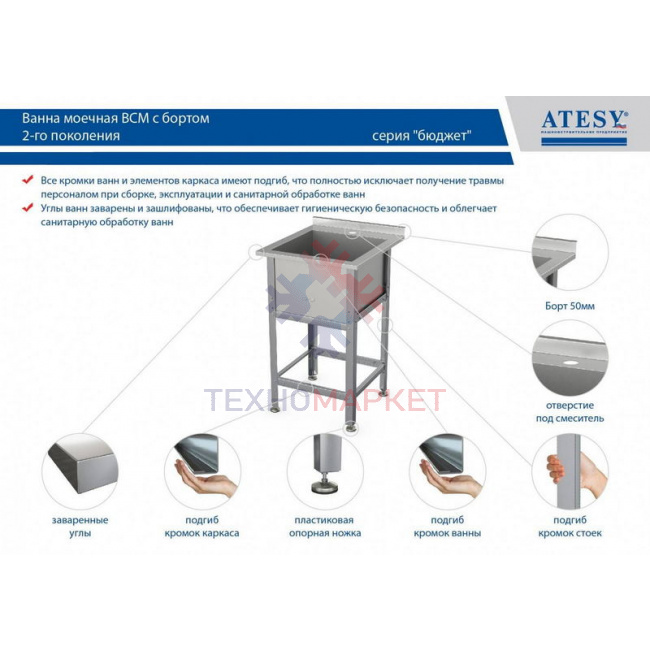 Описание Ванна моечная Atesy ВСМ-Б-2.530-1-02 (ВМ-2/530 с бортом)