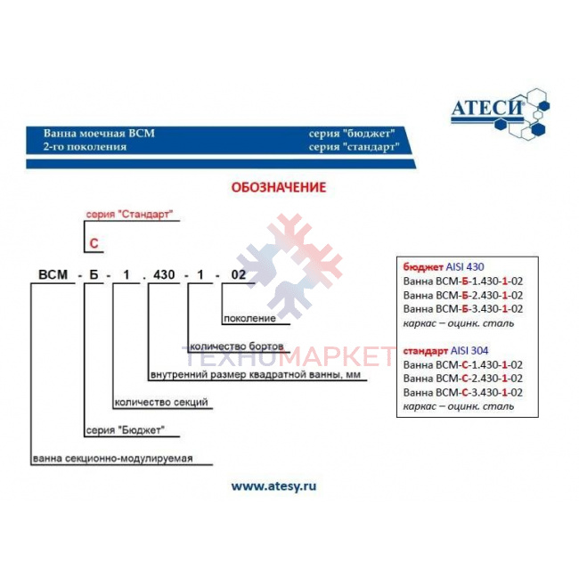 Описание Ванна моечная Atesy ВСМ-Б-3.530-1-02 (ВМ-3/530 с бортом)