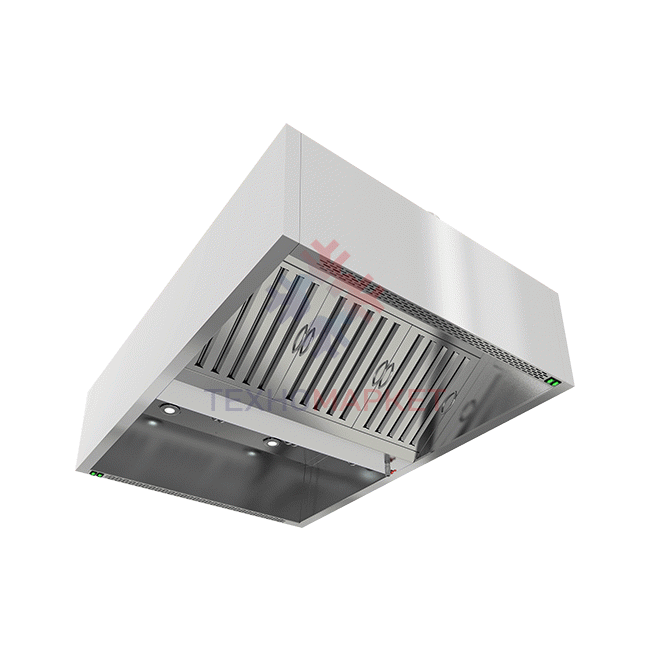 Островной коробчатый зонт с фильтрами типа лабиринт, с отверстием под вентилятор