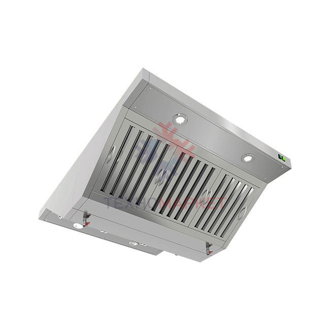 Островной зонт с фильтрами типа лабиринт, с отверстием под вентилятор и козырьком