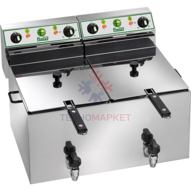 Электрическая фритюрница Fimar FR88R предназначена для приготовления блюд в глубоком слое масла. Оснащена регулятором температуры, двумя кранами для слива масла и съёмным верхним блоком. Для независимого использования каждая ванна оборудована собственным предохранительным термостатом с кнопкой возврата в исходное состояние.