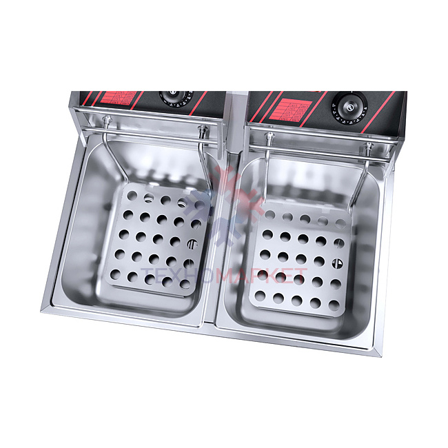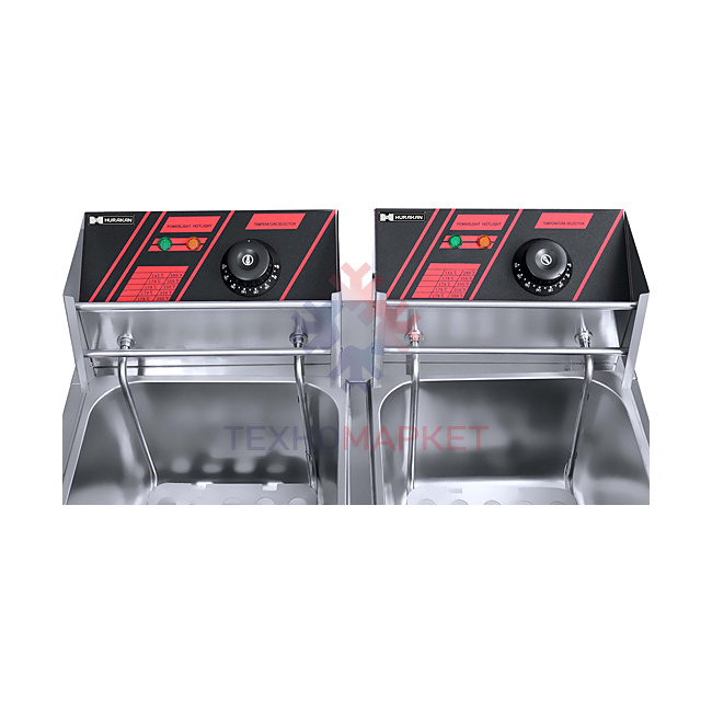 Оснащена аварийным термостатом, отключающим питание при низком уровне или высокой (выше 230 °C) температуре масла, или при перегреве ТЭНа. Имеет 2 ванны, что позволяет существенно ускорить процесс приготовления и быстрее обслуживать клиентов. Ванны имеют раздельное регулирование – при малой загрузке заведения можно использовать только одну из них для экономии электроэнергии.