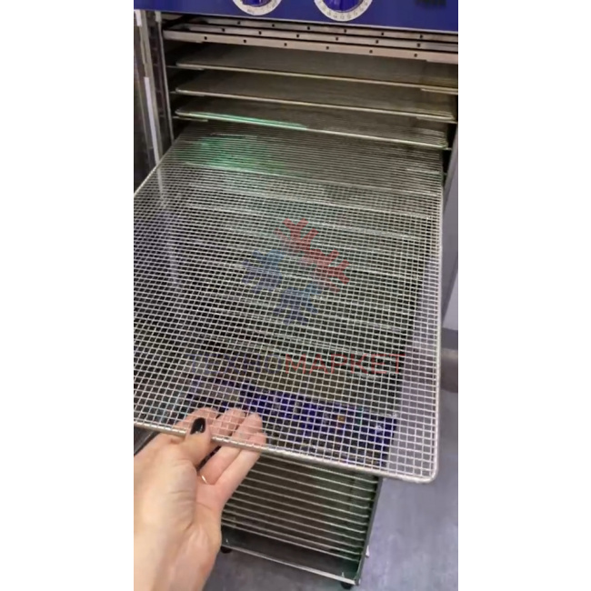 В комплект поставки входят 32 решётки EN 1/1 (600х400 мм) и ёмкость для сбора воды. Материал решёток – нержавеющая сталь AISI 304 толщиной 0,7 мм, шаг сетки – 6x6 мм. Не имеют бортиков.